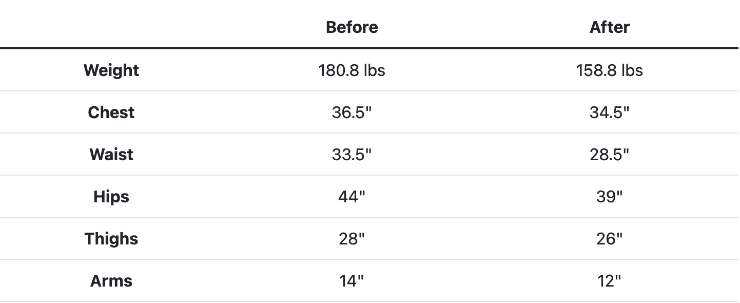 From the time I started, I've lost 22 pounds. My starting weight was 180.8 lbs and my current weight is 158.8 lbs. I'm ready for the next challenge!! I have 20 lbs more to go and I will do it with Burn360!! Can't wait!!